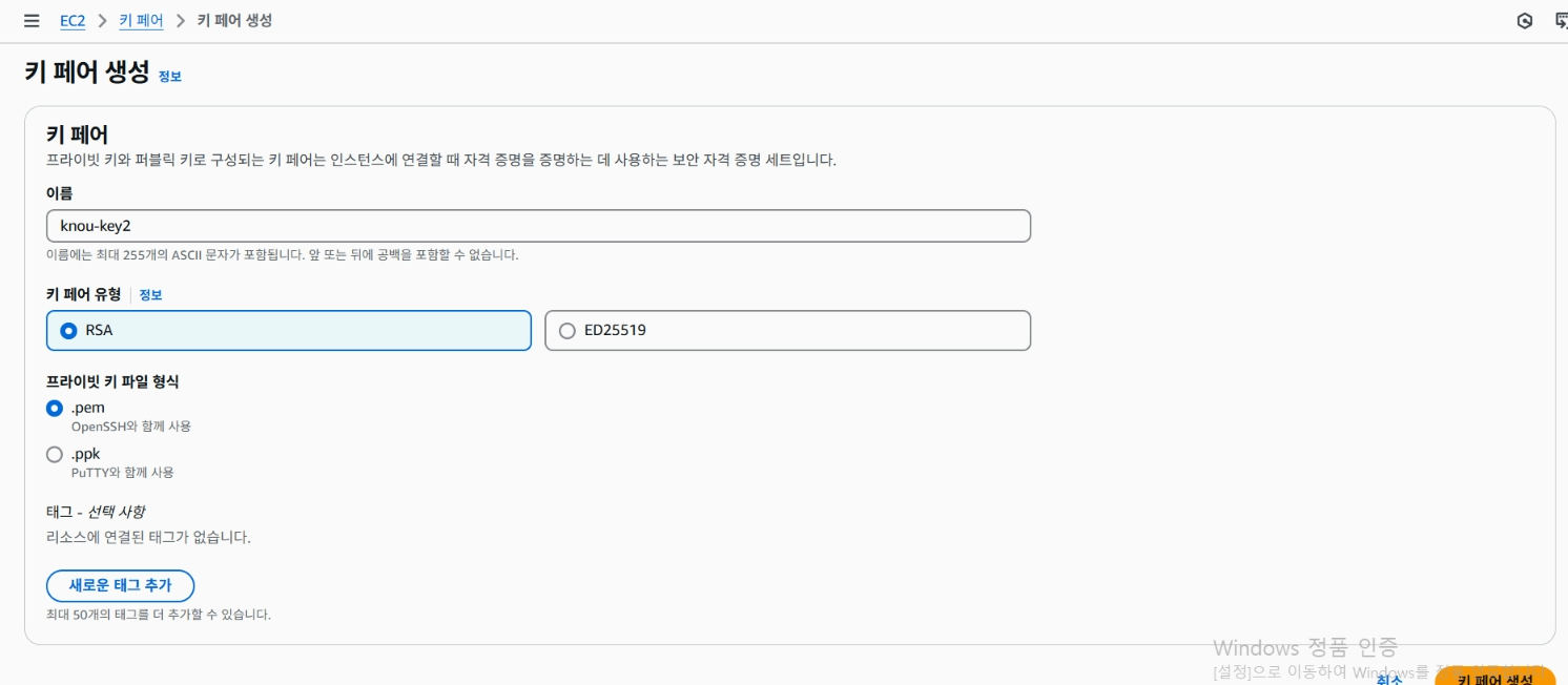 키페어는 생성하여 다운로드하여 가지고 있는다.