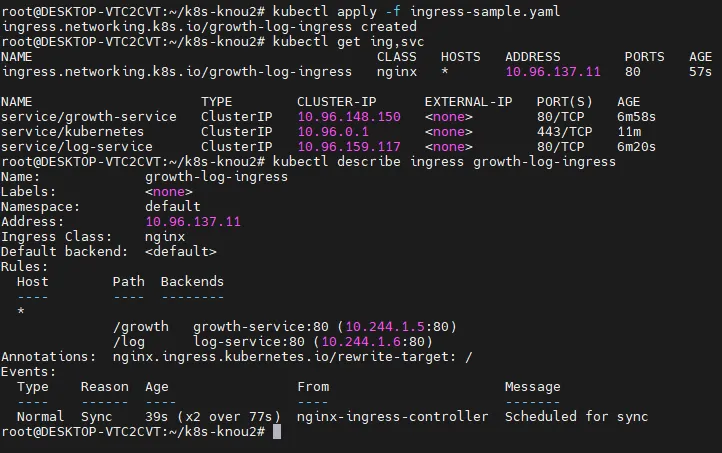 nginx.ingress.kubernetes.io/rewrite-target: / # /growth, /log 요청을 서비스로 전달할 때 접두사 제거. ex) /growth -> growth-service '/'