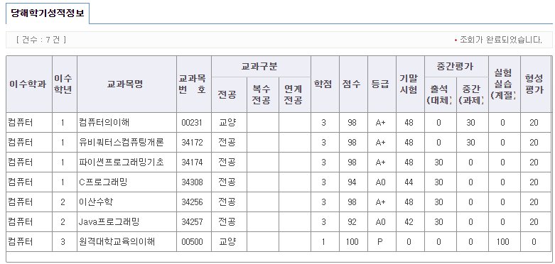 이번에 학사 편입하여 첫 학기였던 방송통신대학교 컴퓨터과학과 3학년 1학기가 끝났다.