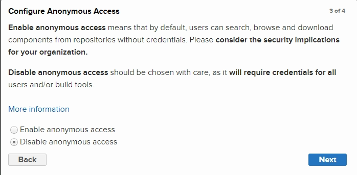 - Configure Anonymous Access에서는 익명 접근에 대한 허용 여부를 물어본다.