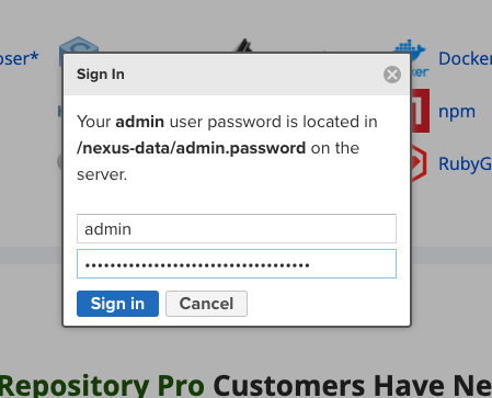 - 비밀번호 : nexus 설치 디렉토리의 admin.password 파일에 최초 비밀번호가 저장되어 있다.